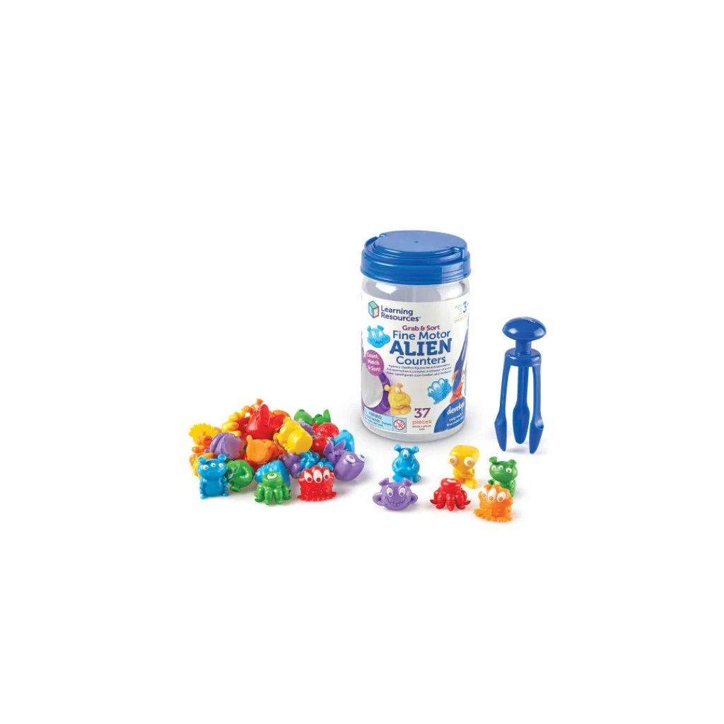 Zábavná třídicí sada s 36 barevnými mimozemšťany rozvíjí jemnou motoriku a logické myšlení. Děti třídí mimozemšťany podle barvy nebo tvaru, chytají je pinzetou a umisťují do barevných kelímků. Hravou formou tak procvičují pozornost, rozpoznávání barev i práci s malými předměty. Skvělé pro výuku doma i ve třídě.