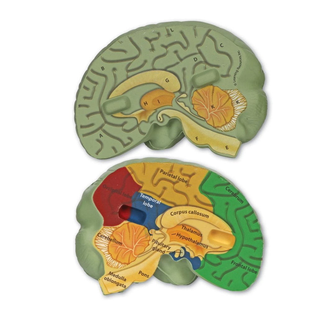 Tento detailní model mozku se skládá ze 31 odnímatelných částí, které znázorňují klíčové oblasti mozku – frontální, temporální, parietální a occipitální laloky, mozeček, mozkový kmen, corpus callosum a další. Každá část je barevně odlišena, což usnadňuje pochopení funkcí a polohy jednotlivých oblastí. Součástí je i stojánek a návod s ilustracemi, takže se děti mohou učit hravou formou.