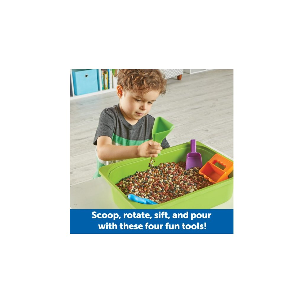 Tato zábavná a praktická sada nářadí je ideální pro rozvoj jemné motoriky a senzorického vnímání. Obsahuje čtyři odlišné nástroje, které dětem umožní mačkat, stříkat, přelévat a přenášet různé materiály – ideální pro hry s vodou, kinetickým pískem nebo sensory boxy. Zároveň pomáhá rozvíjet koordinaci, soustředění a trpělivost.