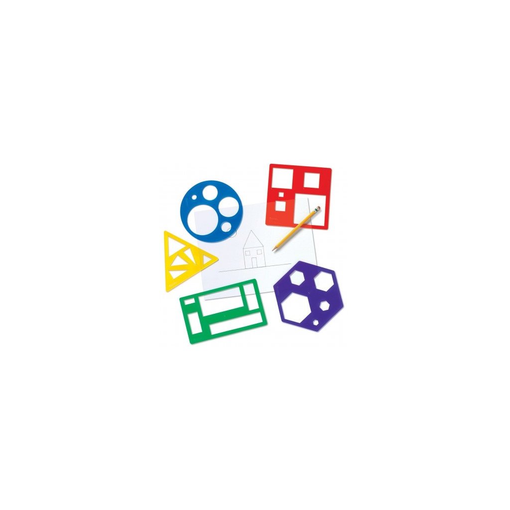 • Obsah balení: 5 šablon (kruh, trojúhelník, čtverec, obdélník, šestiúhelník)