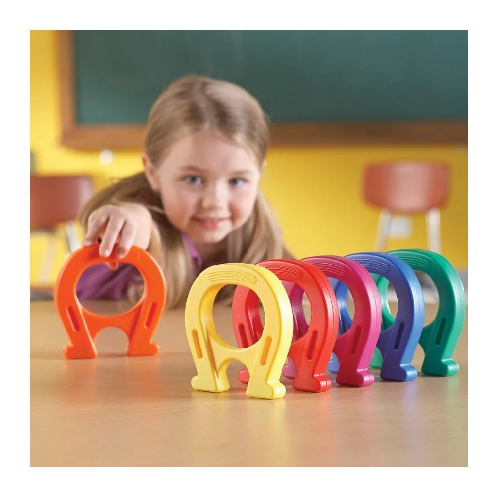 Tato edukativní sada podkovových magnetů nabízí šest barevně odlišených kusů vysokých asi 12,5 cm (5″), vhodných pro malé i větší experimentátory. Každý magnet je správně mágněticky orientovaný – jedna „noha“ severní pól, druhá jižní. Magnety motivují děti k objevování magnetických vlastností prostřednictvím přitažlivosti a odpuzování a posilují jejich praktickou zkušenost s magnetismem.