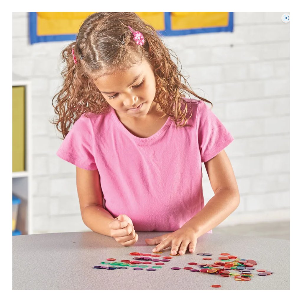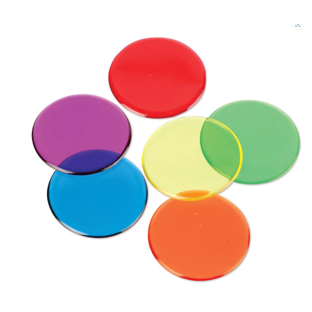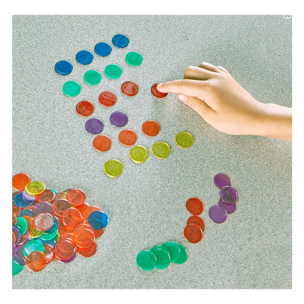 Sada 250 průhledných plastových koleček v šesti různých barvách představuje všestranný nástroj pro výuku a hru. Děti mohou kolečka třídit podle barev, počítat, vytvářet vzory nebo je používat na světelných stolech a podložkách. Díky své jednoduchosti podporují logické myšlení, jemnou motoriku a rozvoj jazyka.