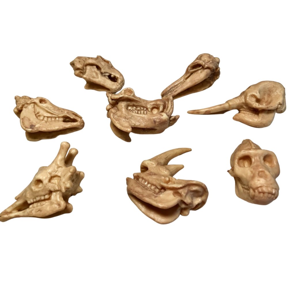 Sada obsahuje 8 lebek zvířat. Velikosti 5-8 cm dle přiložených foto. Vyrobeno z tvrdého plastu v barvě zvětralé kosti, velmi realistické jako lebky. Obsahuje lebku slona, žirafy, nosorožce, opice, delfín, lev, zebra, hroch Nevhodné pro děti do 3 let.
