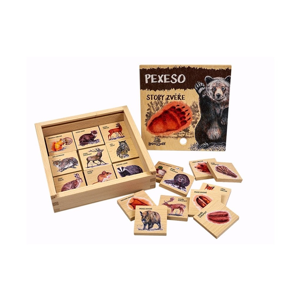 Pexeso v dřevěné krabičce - Stopy zvěře