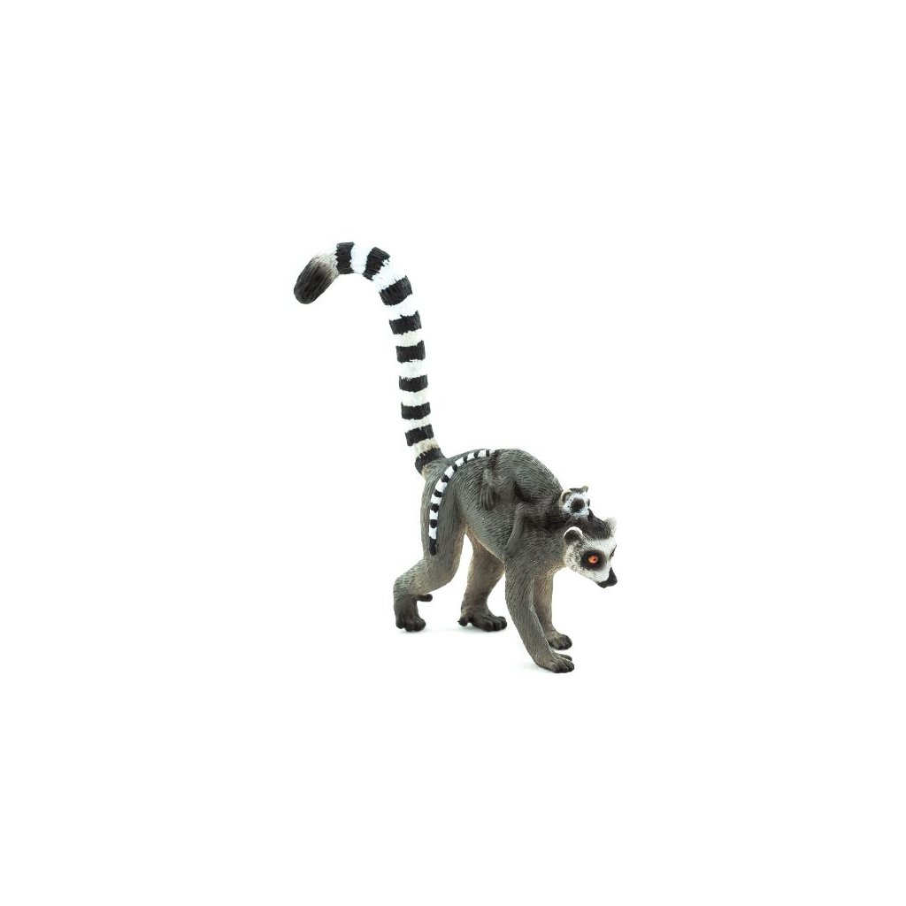 Lemur kata je snadno rozpoznatelný díky svému dlouhému pruhovanému ocasu a zvědavému výrazu. Maminka s mládětem na zádech ukazuje typické chování lemurů v přírodě – stálý kontakt, péči a společenský život. Tato figurka je krásným nástrojem ke hře i učení o primátech a ochraně ohrožených druhů.