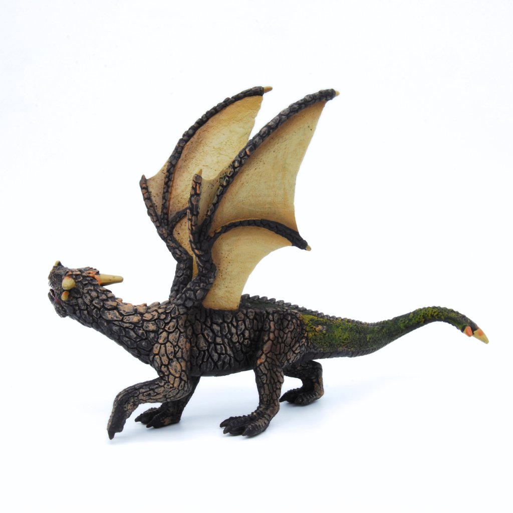 Drak země naproti tomu vyzařuje pevnost, stabilitu a sílu přírody. Jeho tělo připomíná horniny a vrstvy země, jako by byl zrozen přímo ze skal a půdy. Výrazné hřbetní výrůstky a temnější přírodní odstíny dodávají figurce majestátní vzhled.