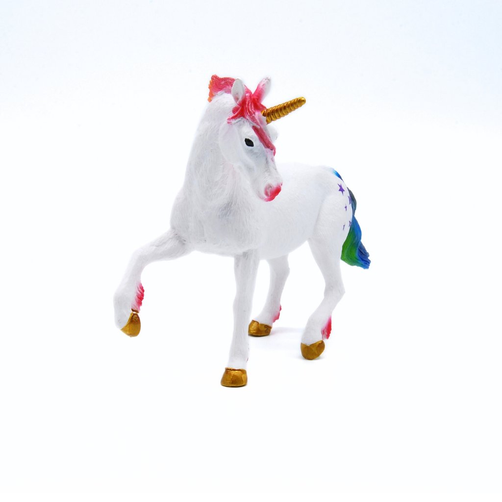 Vstupte do kouzelného světa fantazie s touto nádhernou sadou tří ručně malovaných figurek. Princezna v elegantních šatech, duhový jednorožec a jeho něžné hříbátko tvoří ideální trojici pro tvorbu příběhů, pohádek a laskavých her. Děti si s nimi mohou vytvořit vlastní království, odehrát dobrodružnou výpravu nebo postavit scénu plnou magie a přátelství.
