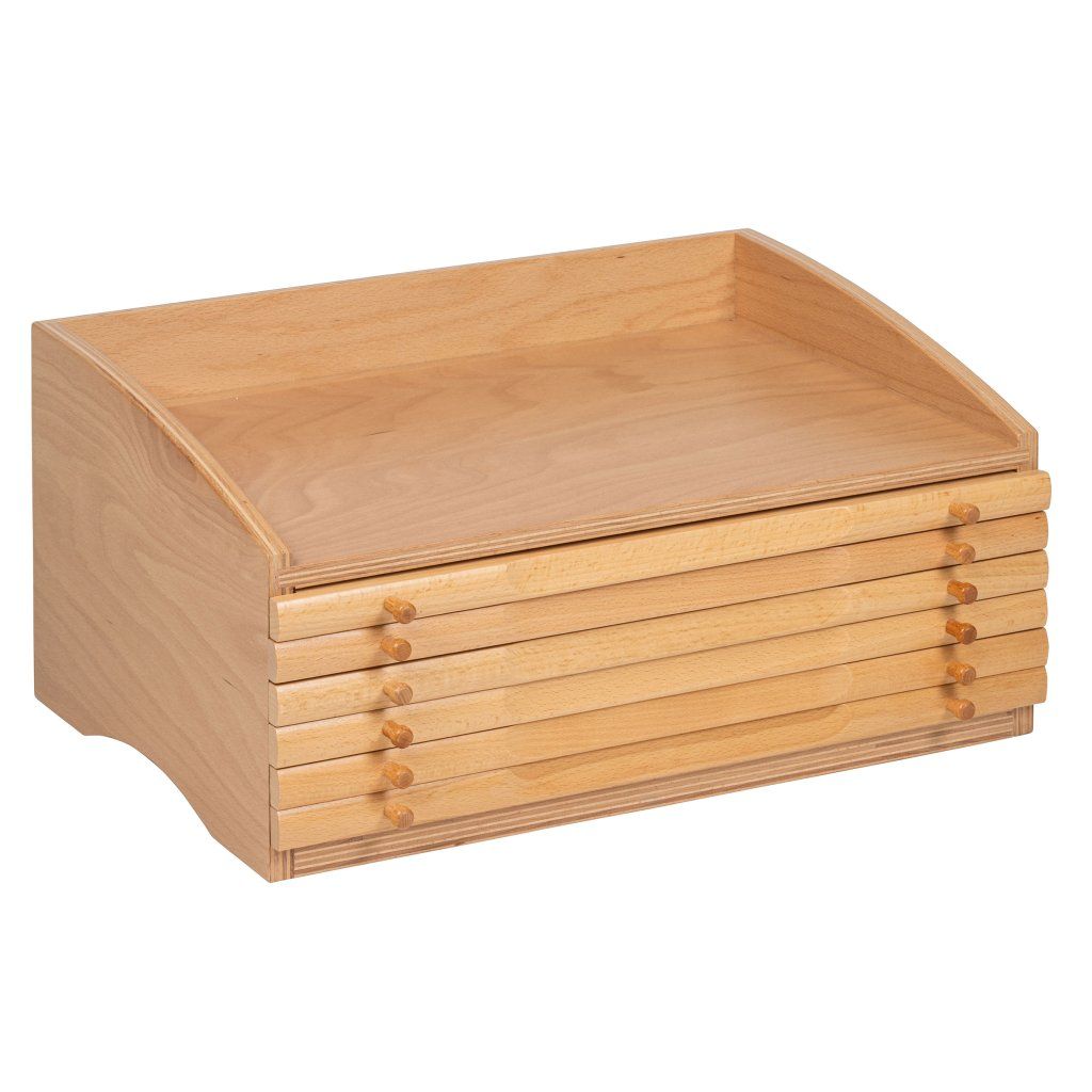 Jedná se o originální Montessori pomůcku v AMI kvalitě od značky Gonzagarredi, která je navržená pro dlouhodobé používání doma i ve školce. Praktická komoda pomáhá udržet materiál přehledně uspořádaný a připravený k práci.