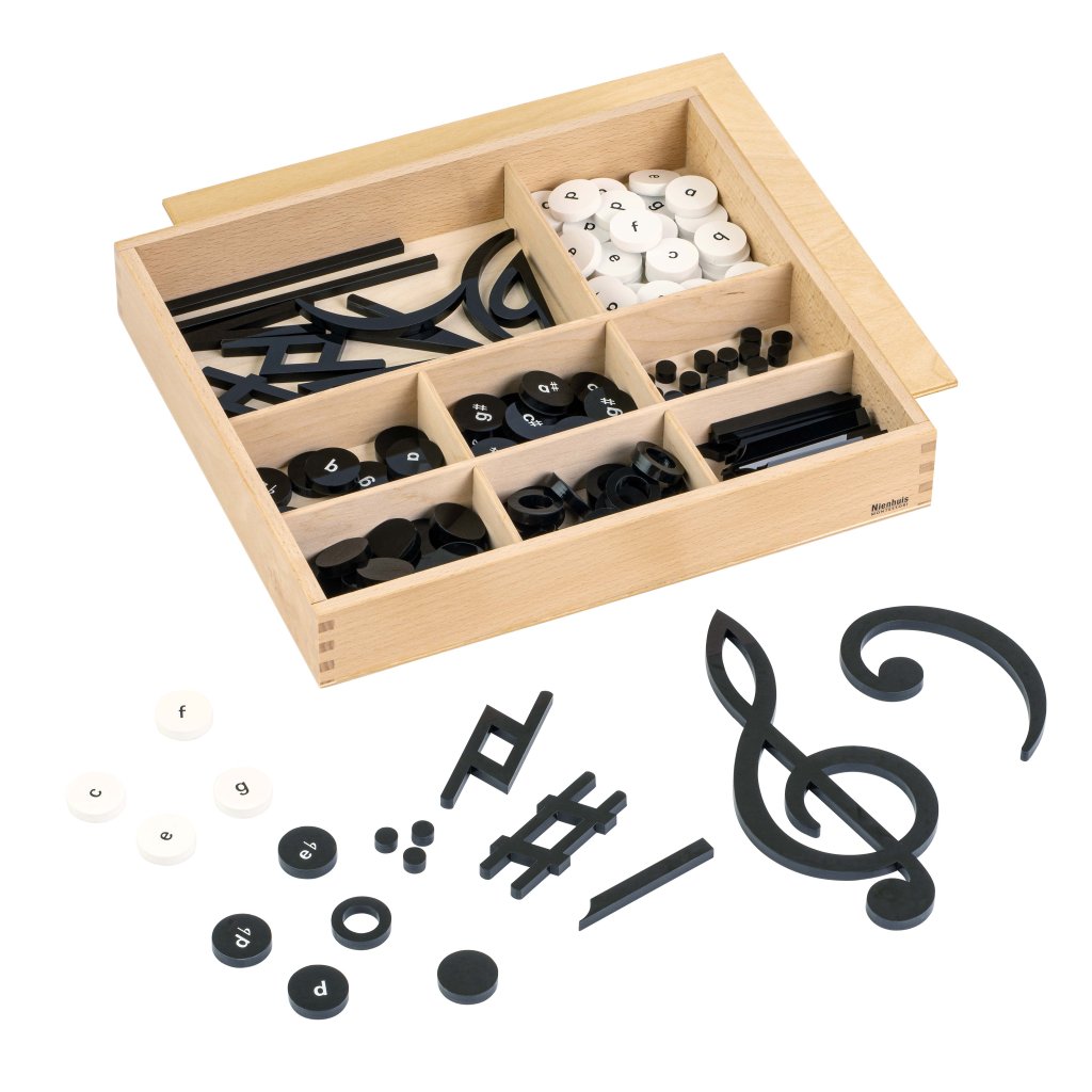 Sada umožňuje dětem aktivně pracovat s hudebními znaky a tvořit vlastní hudební zápis. Díky přehledné krabičce a kvalitnímu zpracování je ideální pro systematickou práci s Montessori zvonky.