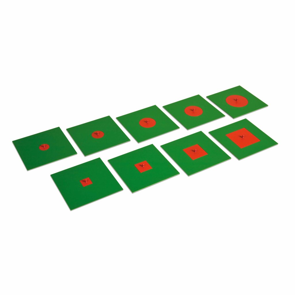 Tento čtvercový kovový materiál se používá pro studium vepsaných a soustředných obrazců. Sada se skládá z 9 zelených kovových rámů s KRUHY a ČTVERCI 1 sada (5 ks) vložek zmenšujících se kruhů v průměru 1 sada (4 ks) vložek zmenšujících se čtverců na délku a šířku určeno pro děti od 9 let Nizozemská firma Nienhuis Montessori vyrábí montessori pomůcky prémiové kvality a to již od roku 1929.Doplňkové parametry