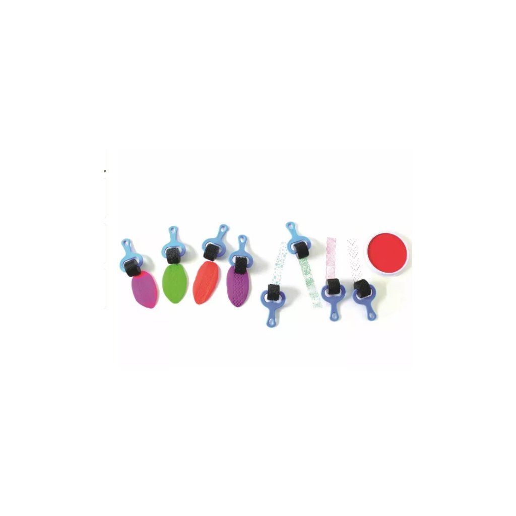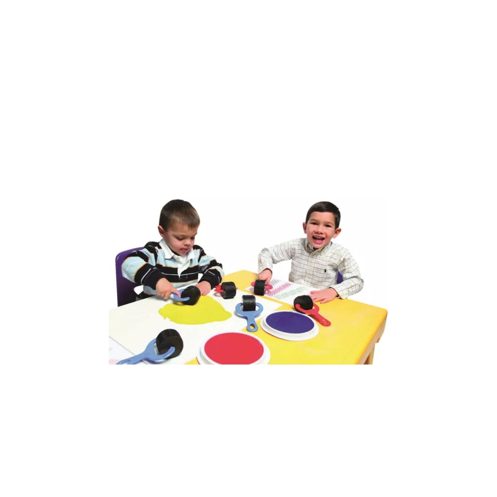 Sada 4 válečků s 3,8 cm širokým vzorem pro použití s barvou nebo hlínou. Provedení válečků: - 8-řádková vlnka - kombinace teček - malé, střední a velké - krajkové klikyháky - 7-řádkové tečky, čárky a oblouky Válečky se snadno čistí. S odolnou plastovou rukojetí pro pohodlný úchop. Nizozemská firma Nienhuis Montessori vyrábí montessori pomůcky prémiové kvality a to již od roku 1929. Věk 3+Doplňkové parametry