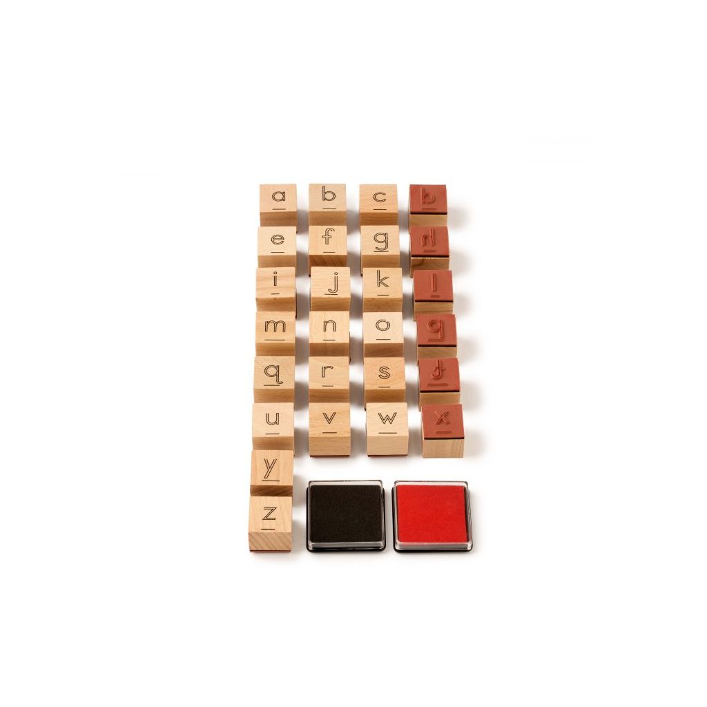 Děti milují razítka. Pořiďte jim tato skvělá razítka s MALÝMI PÍSMENY abecedy a podpořte v nich učení ze správné tvorby písmen. Razítka MALÝCH PÍSMEN abecedy obsahují 26 písmen a 2 razítkovací podložky černou a červenou razítka jsou vyrobena ze dřeva a gumy magnetický úložný box (rozměr: 21 cm x 12 cm x 6 cm) velikost razítek s písmeny: 2,5 cm x 2,5 cm určeno pro děti 3-7 letDoplňkové parametry