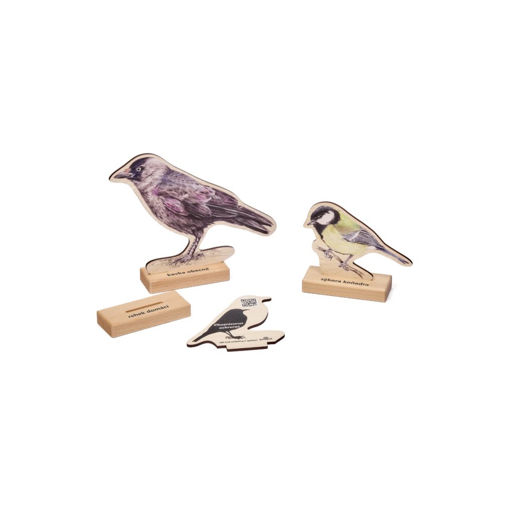 - Balení obsahuje 28 ptáků, makety jsou z překližky o velikosti 8-35 cm na oddělitelném podstavci z masivního dřeva.