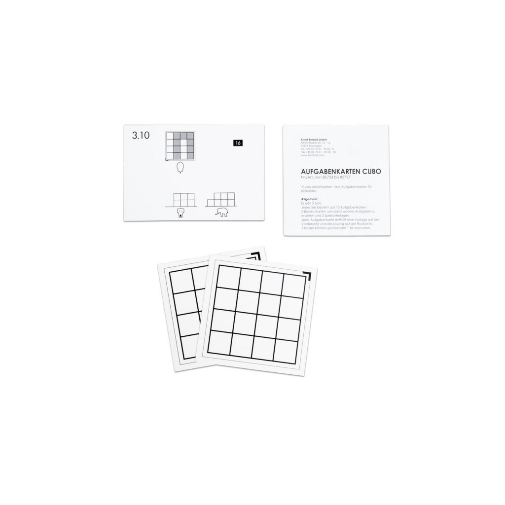 - 10 pracovních karet (13 x 9 cm) k práci s dřevěnými krychlovými kostkami.