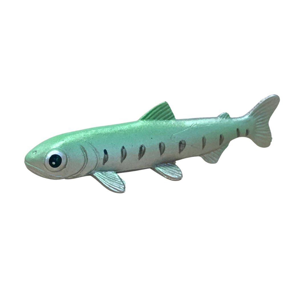 Figurky životního cyklu lososa přehledně zobrazují jednotlivé fáze vývoje – jikry, plůdek, mladého lososa, dospělého lososa v moři a návrat do řeky. Díky ručnímu malování a realistickým detailům si děti snadno představí, jak se losos během života mění a proč migruje.