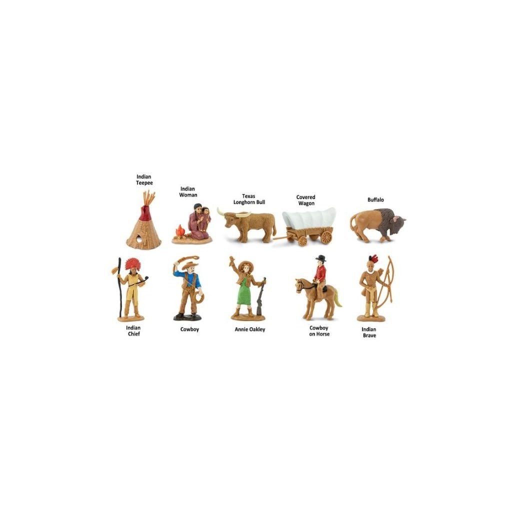 Objevte fascinující období amerického Divokého západu s touto sadou 11 detailních figurek a doplňků. Každá figurka věrně zobrazuje postavy a předměty spojené s tímto obdobím.