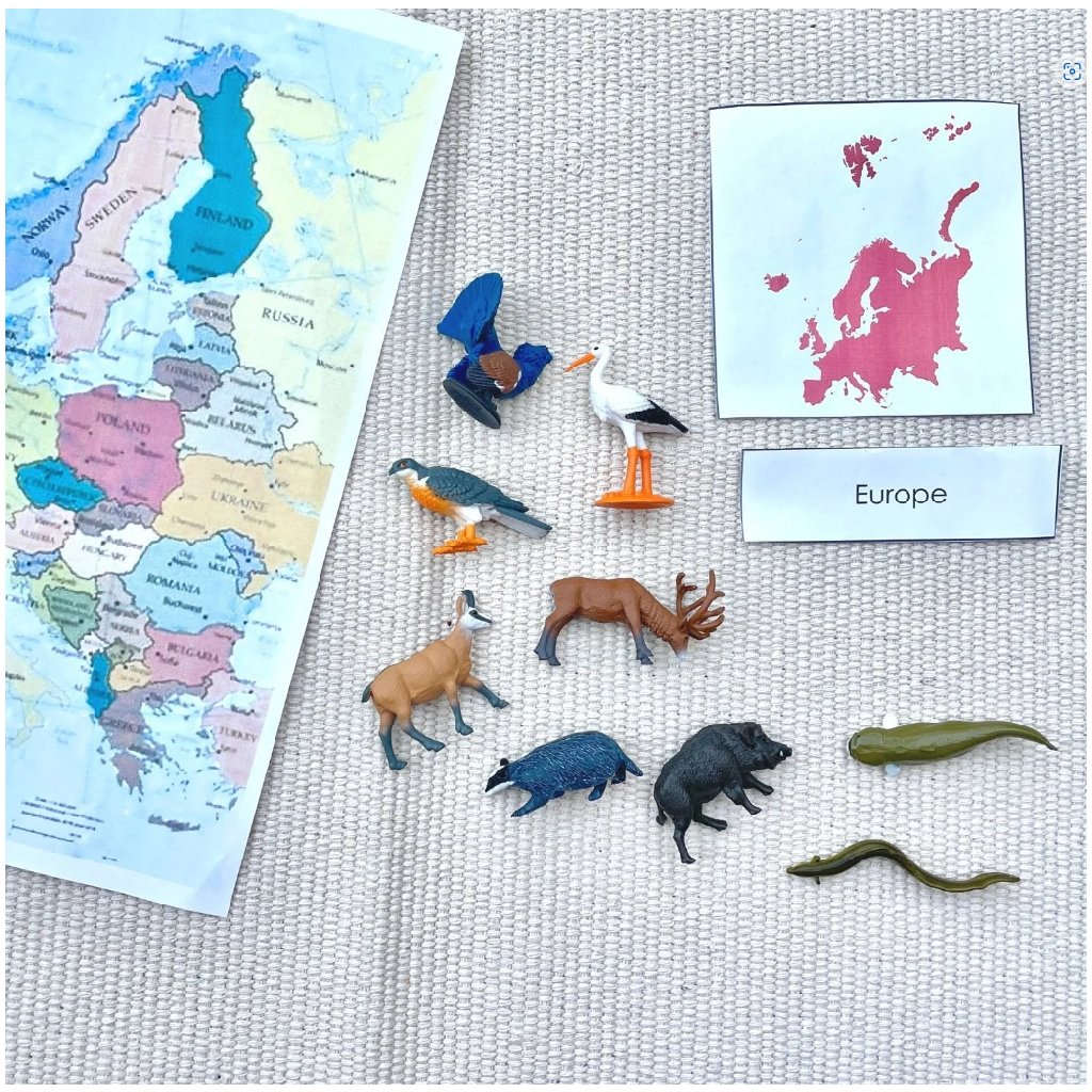 Sada podporuje rozvoj slovní zásoby, zájem o přírodu a schopnost třídění zvířat podle prostředí. Figurky se výborně hodí do výukových koutků v MŠ, ZŠ nebo k domácím Montessori aktivitám. Pomáhají dětem lépe poznat evropskou krajinu a její obyvatele.