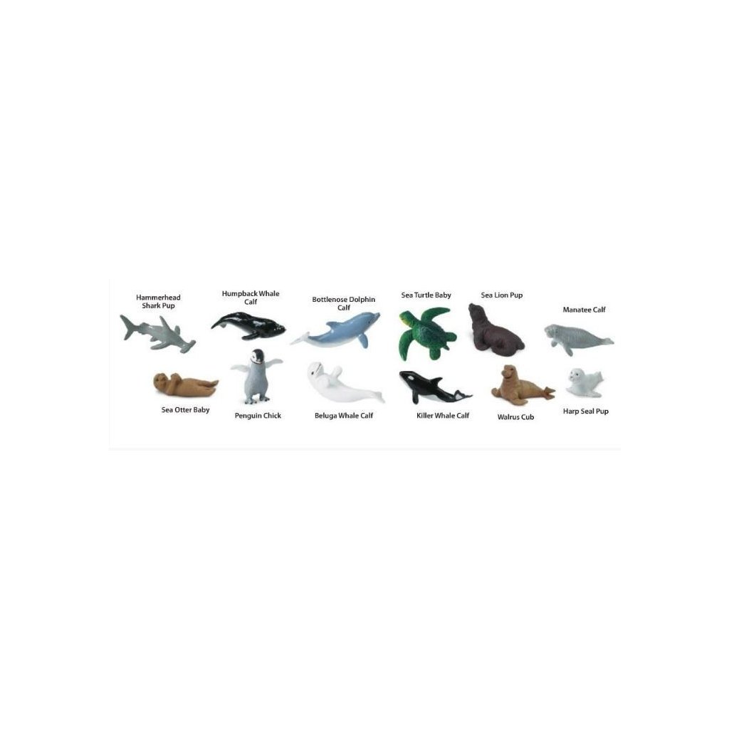 Objevte rozmanitost mláďat mořských živočichů s touto sadou dvanácti pečlivě propracovaných figurek. Každá figurka nabízí věrný obraz mláděte – od žraloka kladivouna až po tuleně harpuna.