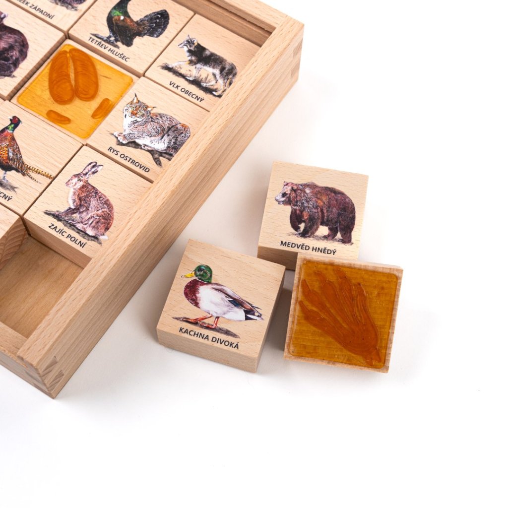Víte co, už jsme měli dost výrobků z Číny a v angličtině tak jsme vám našli výrobce který miluje les v Čechách a navíc má nádherné kresby zvířat, stop, stromů a jejich plodů. Užijte si s námi kvalitní českou hračku ze dřeva z našich lesů a popisy v češtině.