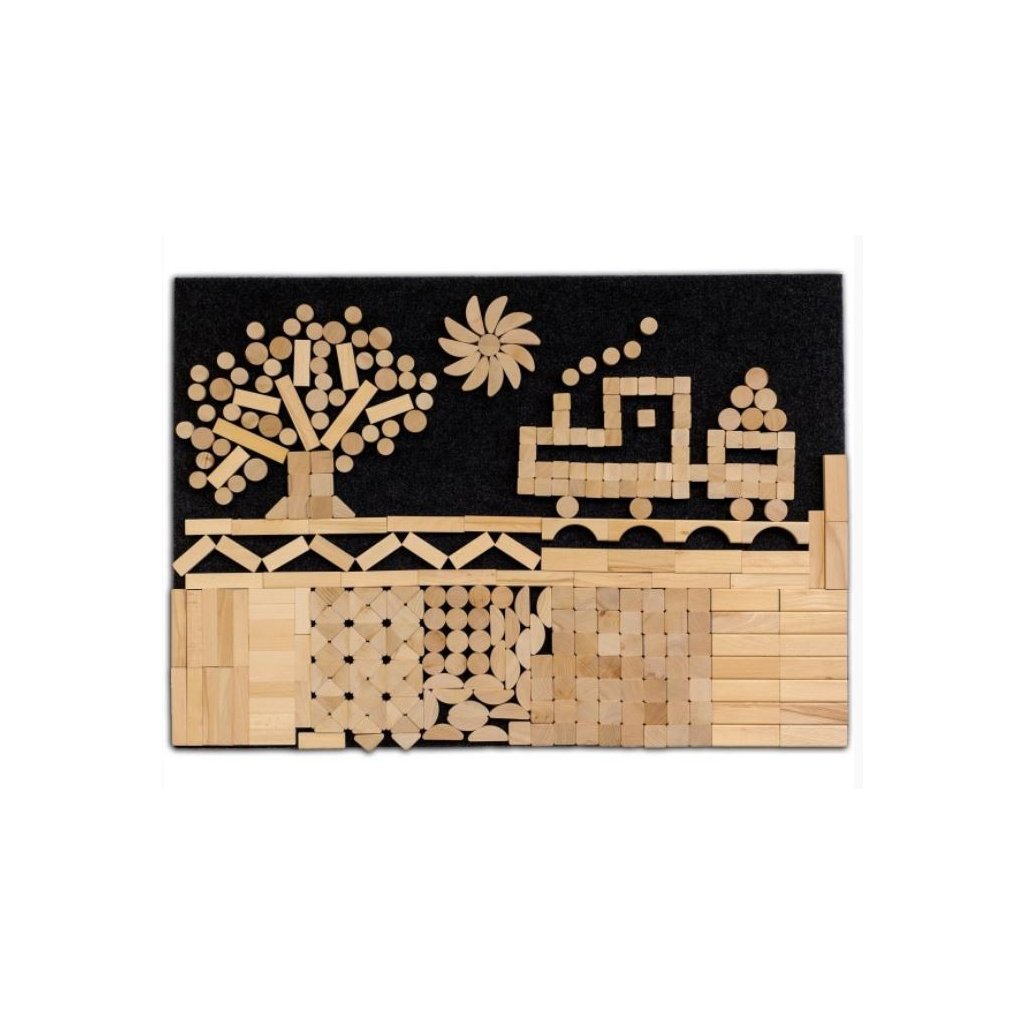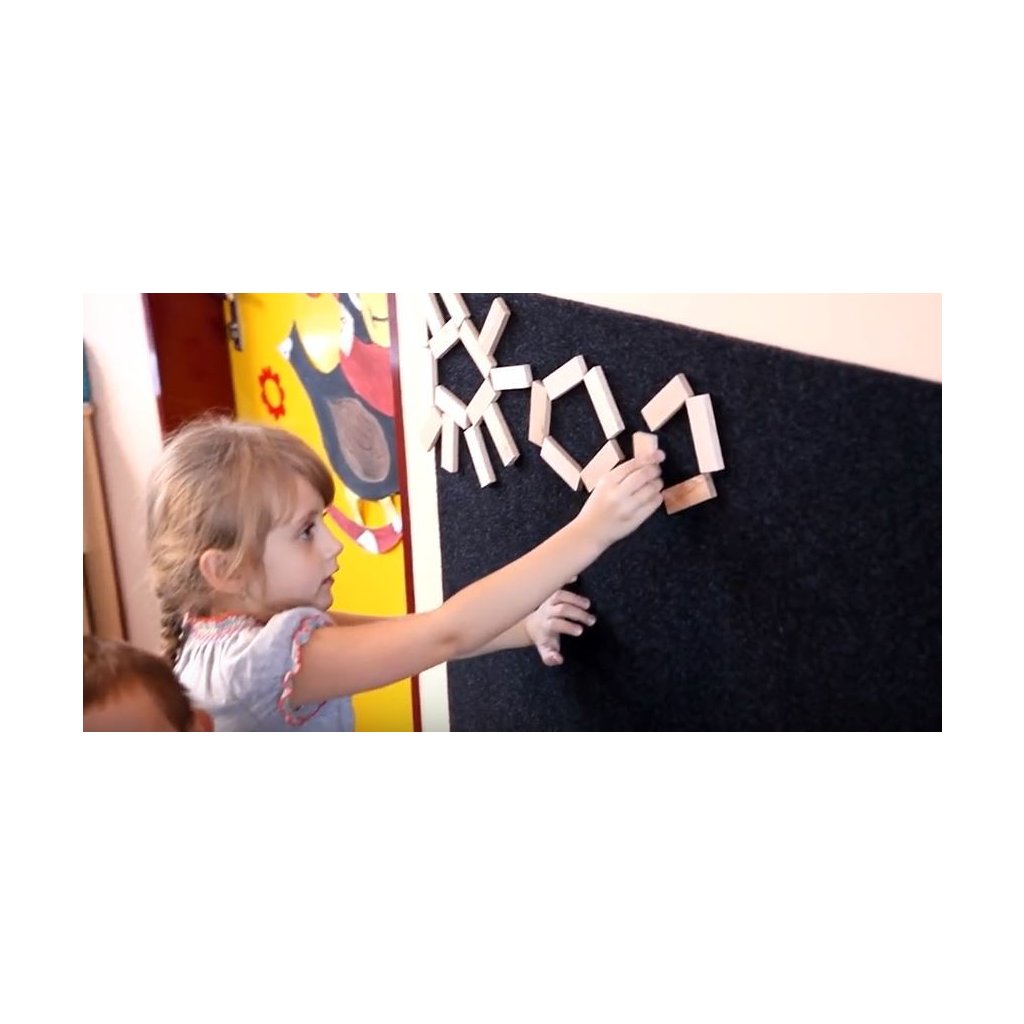 Zařadili jsme do naší nabídky nový skvělý a zajímavý produkt Kreativní hrací stěnu. Jedná se o český výrobek z chráněné dílny ve Frýdlantu nad Ostravicí a tak nákupem nejen potěšíte vaše děti, ale pomůžete i dobré věci. Velká hrací stěna se skládá z plstěné tabule o rozměrech 100x70 centimetrů a 360 skládacích dílků různých tvarů z kvalitního bukového dřeva. Každý dílek je z jedné strany opatřen suchým zipem, který na plstěné tabuli pevně drží a zároveň ho lze snadno odejmout. Možnost vytvářet z kostek na tabuli nejrůznější vzory a obrazce rozvíjí dětskou fantazii a jemnou motoriku. Kostky není potřeba odkládat mimo tabuli, nedochází tedy k nepořádku či ztrátě kostek. Naše hrací stěna se proto perfektně hodí do domácností, školek, různých kroužků či dětských koutků. Jedná se o plstěnou tabuly s pevným podkladem, kterou je možné pomocí samolepících pásků přilepit na zeď nebo zdní stěnu skříně nebo skříňky. Po nalepení pásků na stěnu však stále máte dostatečnou variability pracovat s deskou také na podlaze, protoze stěna je přichycena suchým zipem k plstěné části která je také na zadní straně. Přeje vám spoustu úžasných zažitků a kreativity při hře. Buk - Účinkuje na bolesti hlavy, čistí mysl, podporuje soustředění a pomáhá proti nespavosti. Pomáhá odbourávat stres, podporuje tvůrčí schopnosti a dodává pozitivní pohled na svět.