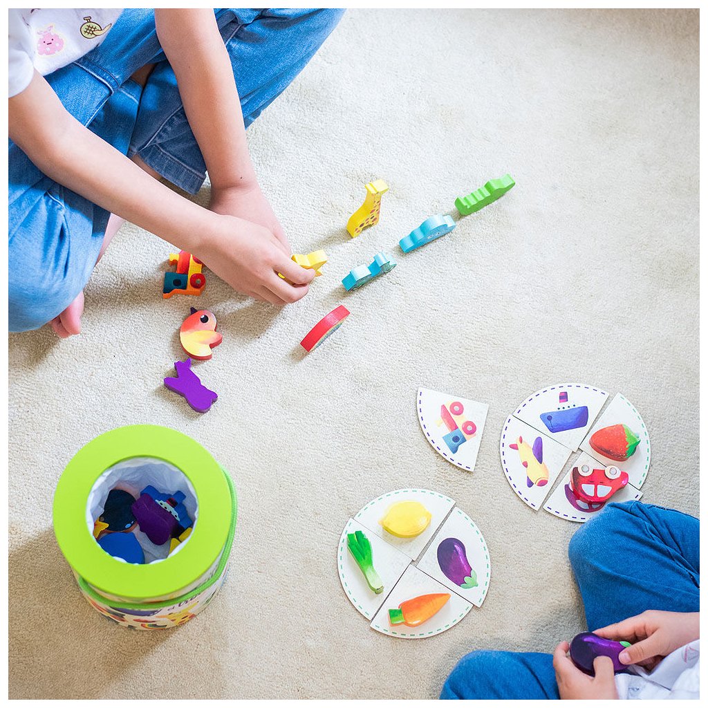 Didaktická hra. Skryté dřevěné předměty v pytlíku v neprůhledném obalu. Menší děti mají za úkol po vložení ruky do tuby jen na základě hmatání popsat svými slovy, jaký předmět drží v ruce. Pomáhá utvářet dětskou představivost svými radostnými ilustracemi či dizajny a reinterpretací klasických hraček, které se jen tak neopotřebují. Rodiče mohou způsob hry dětem předvést názorným příkladem. Starší děti mohou hrát hru ve formě lota nebo binga, k těmto hrám jsou k dispozici obrázkové karty jednotlivých předmětů. Návod ke hře hry Hmatej a najdi + bingo První hráč si vezme kartu z hromádky. Poté musí sáhnout do sáčku a podle hmatu najít dřevěný dílek, který odpovídá obrázku na kartě. Pokud vybere správný dílek, kartu si ponechá a na řadě je druhý hráč, který opět začíná tažením karty z hromádky. Pokud ale první hráč vybere nesprávný dílek, musí svou kartu předat dalšímu hráči, který se musí pokusit najít správný dílek. Po každém kole se dílky vrací zpět do sáčku. Když už na hromádce nezbývá žádná karta, určí se vítěz. Vyhrává hráč s větším počtem karet. Pozor! Pokud jeden z hráčů náhodou vytáhne dílek ve tvaru bomby, musí všechny své karty vrátit na hromádku! Aby se děti lépe seznámily s hmatáním předmětů, můžete upravit pravidla dle vlastního uvážení: 1 – Začněte s malým množstvím dřevěných dílků. 2 – Dovolte jim podívat se do sáčku. 3 – Poté hru opět udělejte o něco těžší, nedovolte dětem nahlížet do sáčku. 4 – Přidejte do sáčku více dílků. 5 – Nakonec, až si děti na hru zvyknou, hrajte podle tradičních pravidel. BINGO variace: Složte 4 karty do kruhu a vytvořte jeden nebo více herních polí pro každého hráče. Jeden z hráčů nebo rodič vytáhne dílek ze sáčku a vyvolá ho. Hráč, který má kartu odpovídající tomuto vyvolanému dílku, si jej vezme a položí na svou kartičku. Hráč, který jako první zaplní své herní pole, vyhrává! Hlavní vlastnosti: rozvíjí motorické dovednosti dětívýborně zpracované tvary odpovídající reálným předmětům Již více než 100 let plní značka Vilac dětské sny. Společnost Vilac sídlí hluboko v srdci pohoří Jura, obklopena horami, jezery a lesy. Tato francouzská společnost vyrábí od roku 1911 dřevěné hračky v klasickém, starodávném stylu s moderními barvami a vzory. Hračky Vilac jsou jedinečné, nikdy nevyjdou z módy a dokáží okouzlit všechny generace. Vilac pomáhá utvářet dětskou představivost svými radostnými ilustracemi či dizajny a reinterpretací klasických hraček, které se jen tak neopotřebují. Děti dostávají na Vánoce a narozeniny spousty hraček, většina z nich je však nezaujme na dlouhou dobu, láska k hračce se nenaplní. Dřevěné hračky Vilac vzbuzují vášeň i o 50 let později, když jako dospělí náhodou najdete v podkroví hračky, které jste jako děti milovali. Vilac již 100 let propojuje děti s hračkami, které si oblíbí a váží si jich. A proč je děti tak milují? To zůstává tajemstvím firmy Vilac. Rozměry balení 16x16x16 cm Věk 2-6 let Materiál dřevo Obsahuje 41 ks dílků